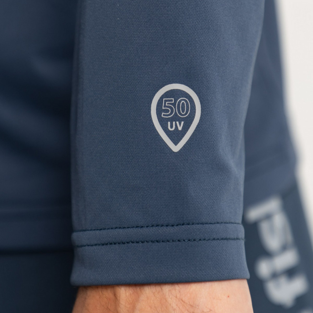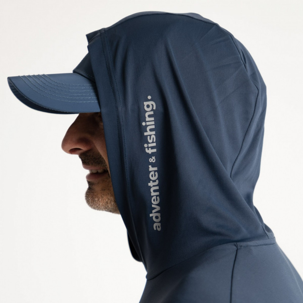 Hosszú ujjú kapucnis UV póló Original Adventer témában, az Adventer & Fishing márka sötétkék színében.