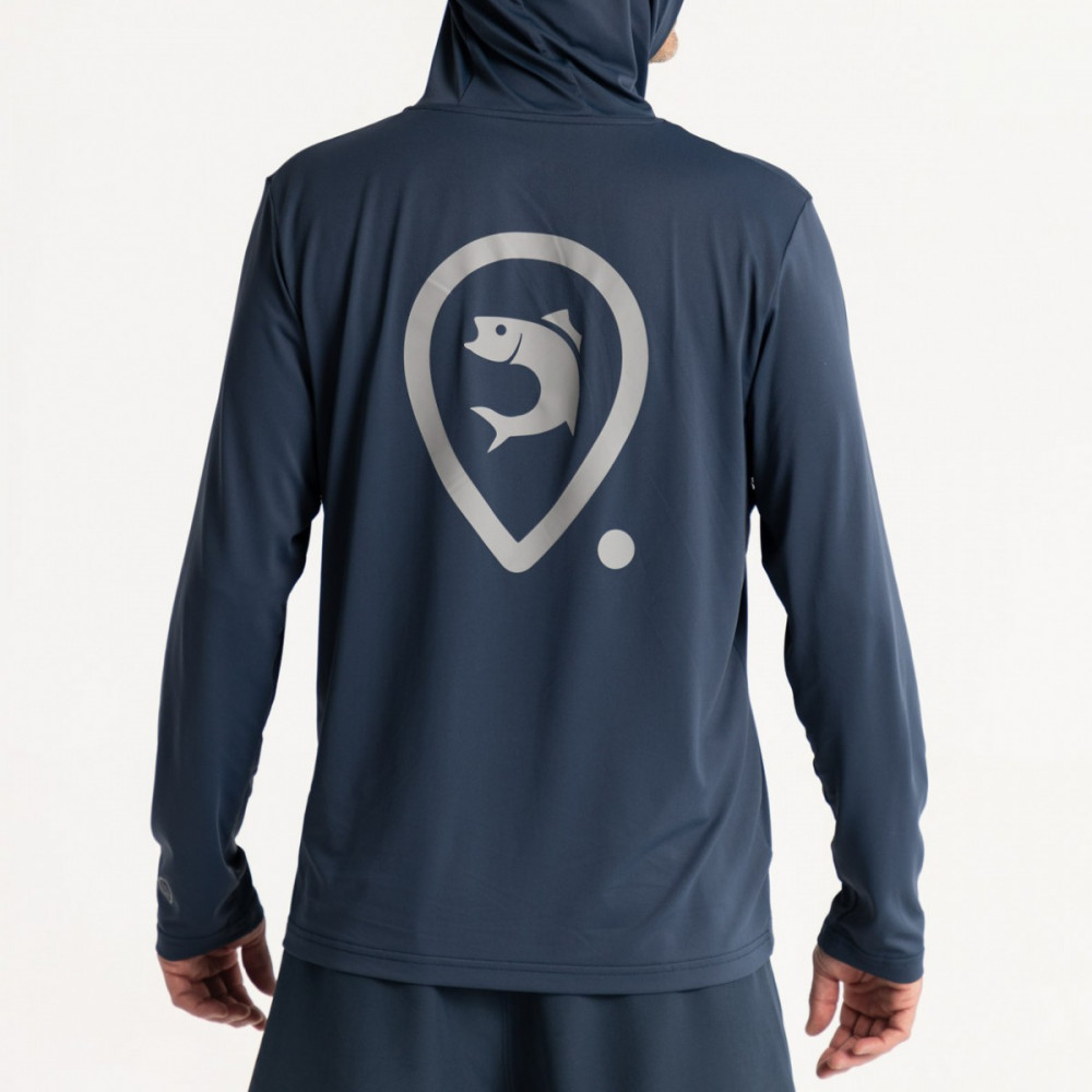 Hosszú ujjú kapucnis UV póló Original Adventer témában, az Adventer & Fishing márka sötétkék színében.