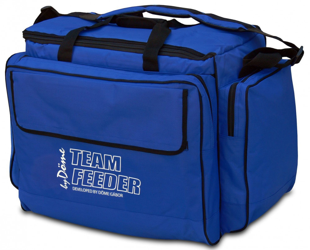 Az etetőanyagok, a csalik vagy más nagyobb műanyag edények garantáltan el fognak férni a nagy rekeszben. Ennek mérete 52x28x42 cm. Az elején található nagy első zsebbe tehetünk még csalizó tálcát, haltartót, vagy szákfejeket is.