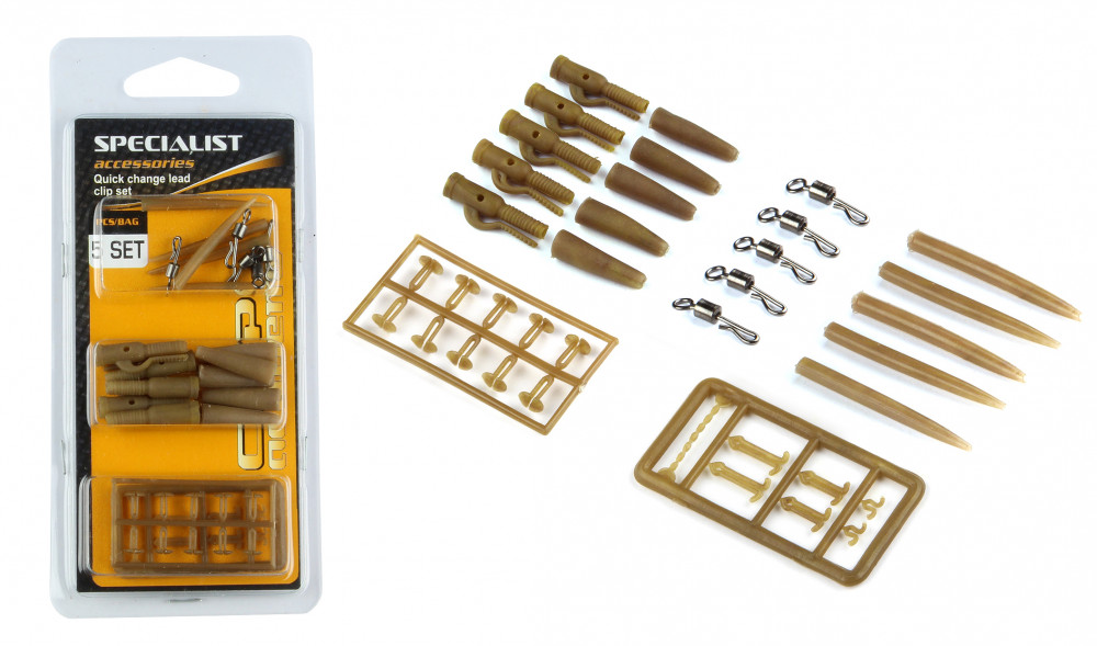 A készlet tartalmaz biztonsági ólomkapcsokat, gyorskapcsokat az előkéhez, valamint hozzá való gubancgátló szilikoncsöveket. Továbbá öt különböző méretű és típusú stoppert a csalikhoz.