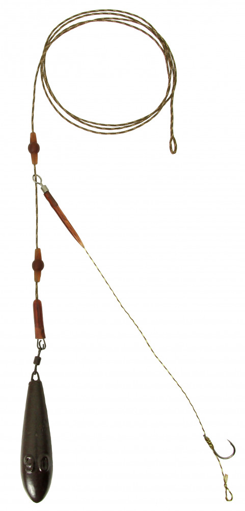 A szinterezett repülőólomhoz, gyorskapoccsal és hozzá tartozó gumiharanggal van rögzítve a leadcore. A hozzá való gumigyöngyökkel könnyen beállítható az Ultra Soft hajszálelőke távolsága. A horog minőségi, edzett japán acél.