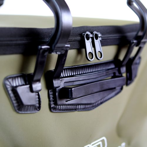 A táska anyaga kellően vastag és erős, bátran terhelhető. A dupla cipzár strapabíró típusú, amely hosszú távon is jól bírja a vízparti viszonyokat.