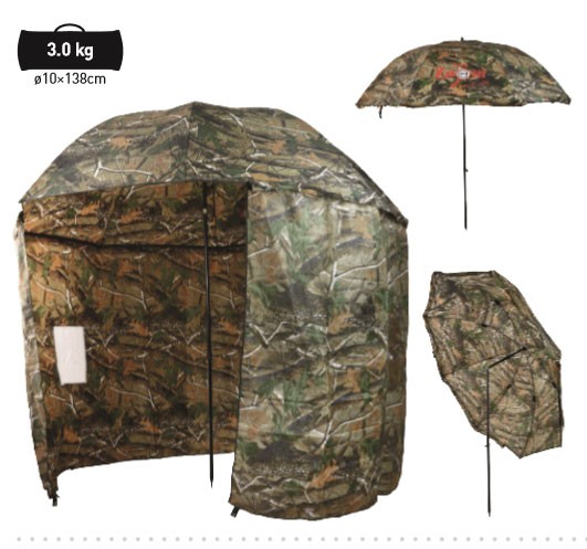 Terepmintás, többrétegű horgászernyő, mely ellenáll az időjárás viszontagságainak felhőszakadásban, rekkenő napsütésben egyaránt. A felcipzározható palásttal megvéd minket és felszerelésünket a széltől, esőtől, portól és napsütéstől. Palást nélkül hagyományos horgászernyőként használható. ( Erős, viharos szélben javasolt összecsukni.)