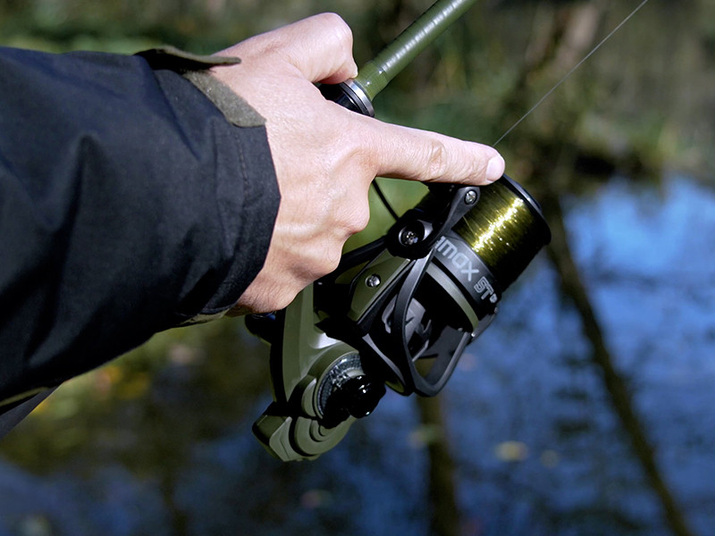 A minõségi fém görgõ és a vastagabb felkapókar növeli az orsó szilárdságát és tartósságát. A vékony fém hajtókar sötétszínû fa fogantyúval van ellátva, amely kényelmes fogást biztosít, és exkluzív megjelenést kölcsönöz az orsónak. Az AMOX matt zöld színben készül, fekete hangsúlyokkal, fényes részletekkel, stílusos karbon elemekkel, az orsótesten feltûnõ kivágásokkal kiegészítve.