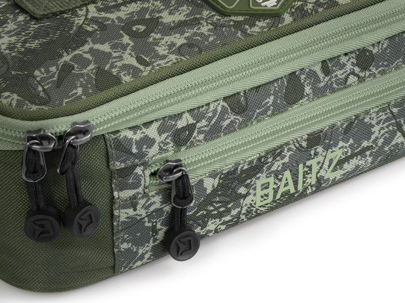A BAITZ a dip csalik tárolására és szállítására lett tervezve. 6 db átlátszó műanyag tárolót tartalmaz tömítéses fedéllel. A tárolókon található tömítések lehetővé teszik a mártogatott bojlik, pelletek vagy más típusú csalik tárolását. A belső elválasztók 6 egyforma rekeszre osztják a teret, amelyek jól rendszerezetten tartják a tárolókat.