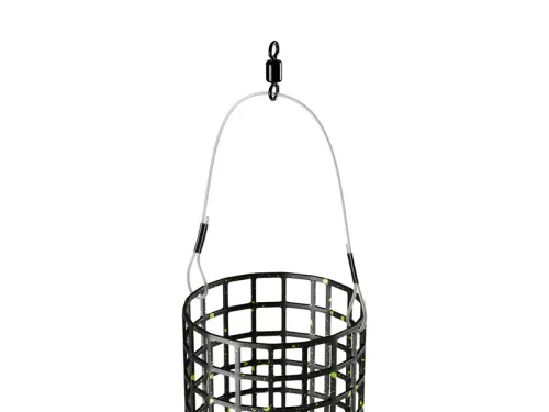 A kosár erős drótból készült, amely ellenáll a mechanikai sérüléseknek és a nehéz körülményeknek. Hengeres formája biztosítja az etetőanyag gyors kioldódását közvetlenül fenékre érkezés után. A hagyományos, „könnycsepp” alakú távdobó kosarakkal szemben az ECO ROUND gyorsabb szétesést biztosít a nagyobb szemcséjű etetőanyag esetében. Elég a durva keveréket betölteni, mindkét oldalról finom etetőanyaggal lezárni, majd fenékre érkezés után enyhén meghúzni.