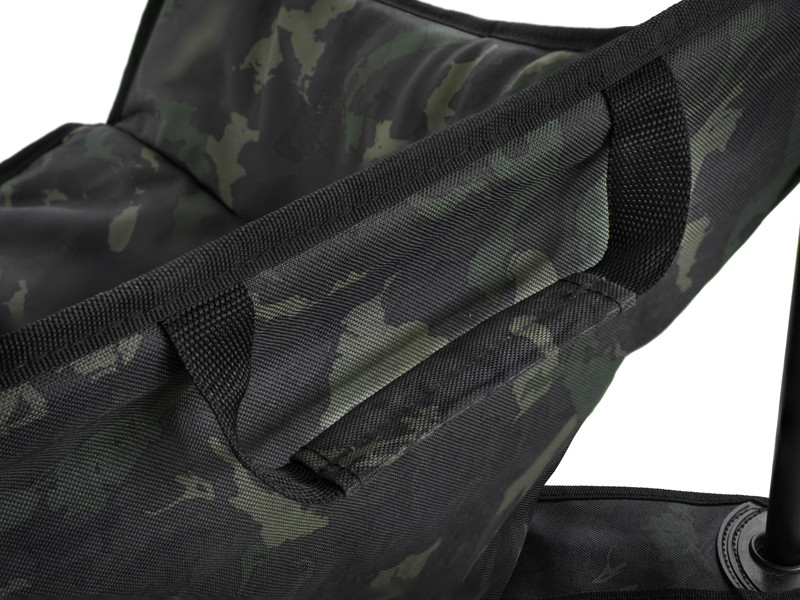 A kényelmet a matrac belső és peremrészein található puha töltet biztosítja. A külső borítás strapabíró 600D szövetből készült, amelyet az eredeti BANX álcázás díszít. Ez nemcsak egyedi megjelenést biztosít a széknek, hanem növeli az anyag ellenálló képességét is a gyakori használat során.