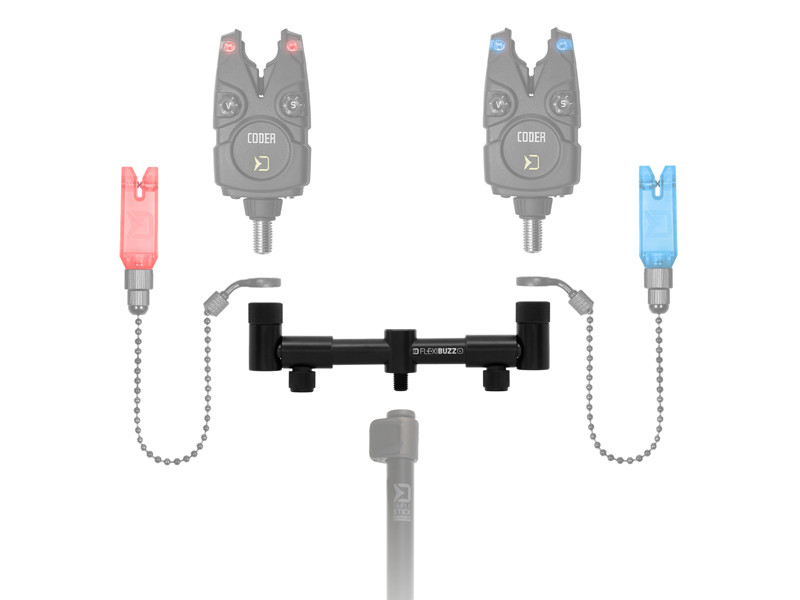 A karok alul laposra vannak vágva, így a rögzítőcsavar meghúzásakor a helyükön maradnak és nem fordulnak el. A felső menetek anyákkal vannak ellátva annak érdekében, hogy bármilyen típusú kapásjelzőt vagy botvillát pontosan egy síkba lehessen állítani a buzz bar-ral. A FlexiBUZZ erős alumíniumból készül, tartós fekete porbevonattal.