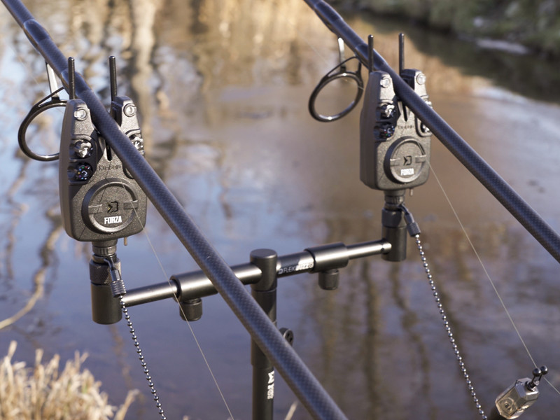 A karok alul laposra vannak vágva, így a rögzítõcsavar meghúzásakor a helyükön maradnak és nem fordulnak el. A felsõ menetek anyákkal vannak ellátva annak érdekében, hogy bármilyen típusú kapásjelzõt vagy botvillát pontosan egy síkba lehessen állítani a buzz bar-ral. A FlexiBUZZ erõs alumíniumból készül, tartós fekete porbevonattal.