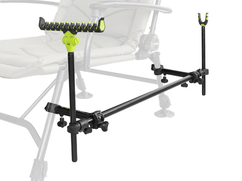 Ez a bottartó nagyon sokoldalúan felhasználható; a rögzítőelemek mozgathatók és forgathatók annak érdekében, hogy könnyen csatlakoztathatók legyen a székekhez. A termék mindkét oldalán műanyag kapcsokban lévő rudak találhatók, amelyek függőlegesen mozgathatók vagy elforgathatók. A rudak felső része univerzális menettel rendelkezik a különböző típusú feeder bottartókhoz. A tartó mindkét végén teleszkópos, igény szerint bővíthető.