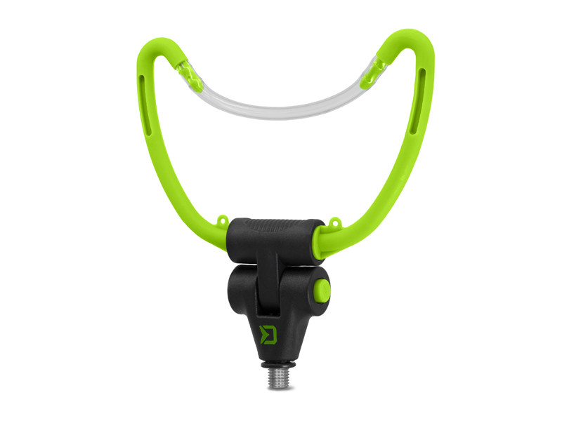 A Delphin REAXE „U” alakú tartó egy sokoldalú, megbízható és biztonságos bottartó feeder horgászoknak. Az alján található szerkezet segít a kívánt dõlésszög beállításában. 14,5 cm széles. Az etetõkosár megtöltésekor a horog rögzítésére szolgáló hurkok, a tartó hasznos kiegészítõi. Ezenkívül 4 nyílással rendelkezik a világítópatronok számára, a kényelmes éjszakai horgászathoz. Univerzális menettel rendelkezik, amely kompatibilis a legtöbb leszúróval és bottartóval a piacon. A zöld és fekete szín tökéletesen passzol a REAXE feeder sorozathoz.