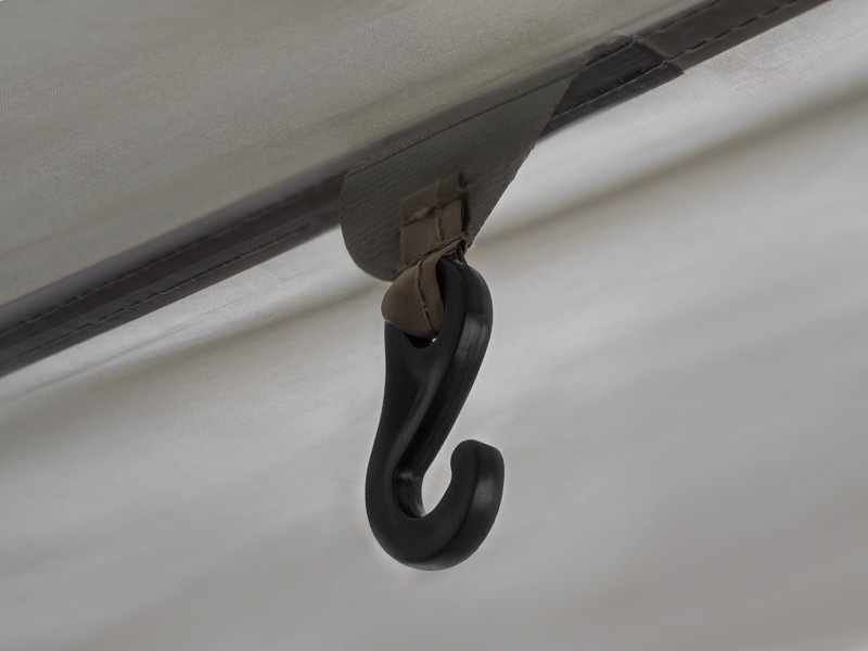 Az első oldalán négy cipzár található, melyekkel választhatja a bejáratott, vagy a szellőzést. Rendelkezik szúnyoghálós ablakkal, így mindig látni fogja mi történik a horgász helyén. A sátor tetején egy praktikus kampó található, melyre rá tudja akasztani lámpáját vagy kabátját. A hátsó oldalon található zsebbe bele tudja tenni mobilját, kulcsait, kapásjelzőjét, melyek így mindig kéz alatt vannak.