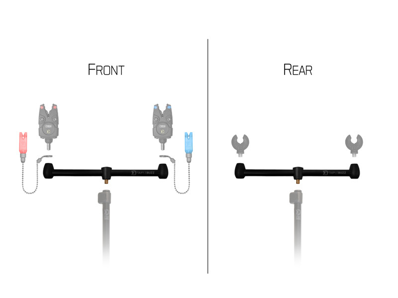 A Delphin SIMPLEBUZZ egy különálló univerzális tartó két bot számára. A szabványos menetnek köszönhetően bármilyen leszúróhoz illik. Tökéletes például a Delphin Simple Stick leszúróval kombinálva. Minden menet tömör műanyagba van szerelve, így nem áll fenn a kiszakadás vagy megcsavarodás veszélye. A tartó teste alumíniumból készült, elegáns fekete felülettel. Ez az anyagkombináció hosszú élettartamot és tartósságot garantál. Egyszerű összeszerelésének és tárolásának köszönhetően ideális megoldás a rövid horgászatokra, de akár hosszú expedíciókhoz is használható.