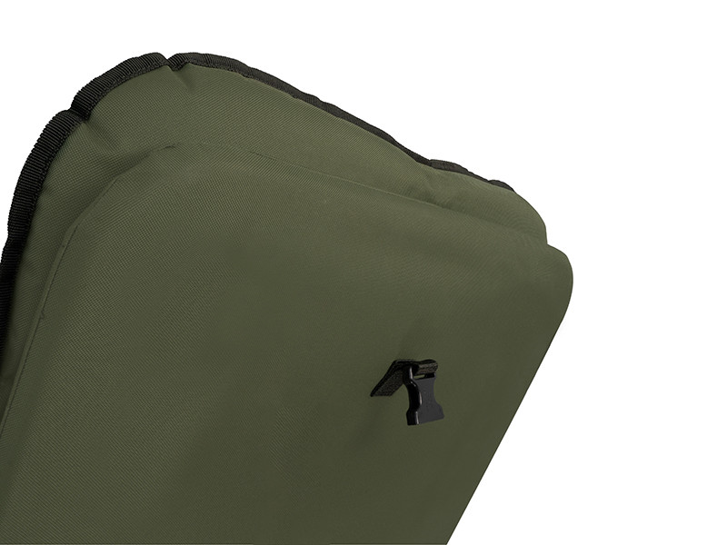 A szék karjaiban elhelyezett állítható mechanizmus lehetõvé teszi a háttámla dõlésszögének változtatását a horgász igényei szerint. A fej és a nyak maximális kényelmét a sötétzöld színû extrán párnázott polár fejtámla biztosítja, amelyen a termék logója látható. A háttámlában és az ülõrészben található matrac tartós 600D anyagból készült, egyedi átlós varrással. A széleit 600D szövet borítja, szabadalmaztatott C2G terepszínben. A halfogások közötti kellemes idõtöltés érdekében a szék ergonomikusan kialakított karfákkal van felszerelve, amelyek tökéletes kényelmet nyújtanak pihenés és a természetben való gyönyörködés közben.