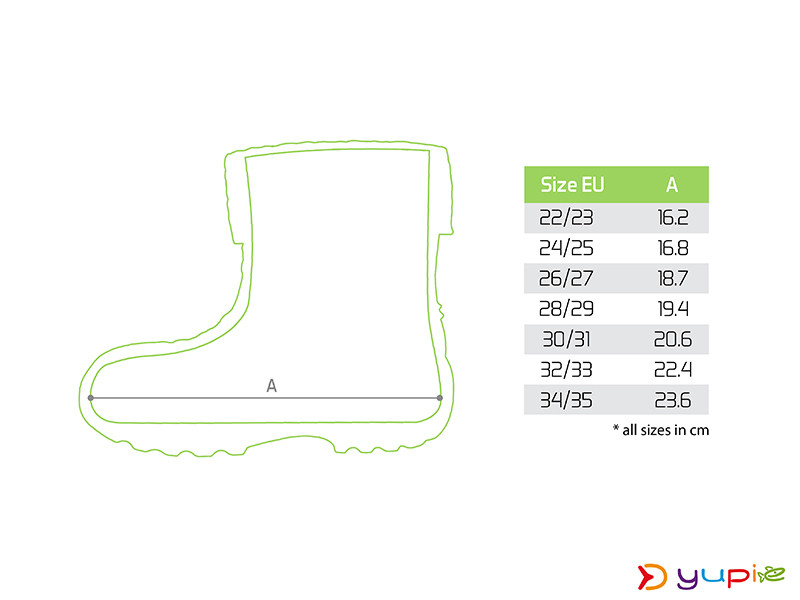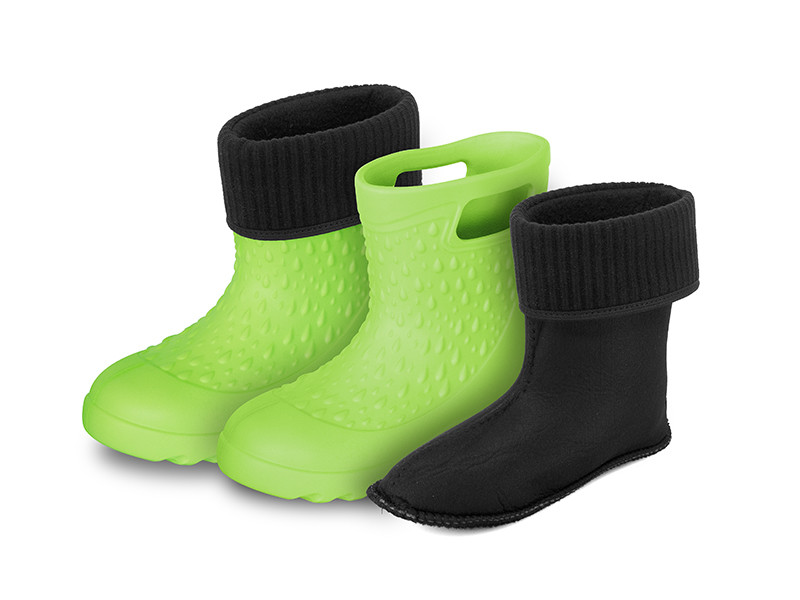 Meleg bélése eltávolítható, így a csizma minden évszakban használható. EVA habból készül a puhaság és rugalmasság érdekében. A felső részen bevágások találhatók, hogy kényelmesebben felvehető legyen. A talp kiváló tapadású, amely csökkenti a nedves vagy egyenetlen terepen való elesés esélyét. Ezek a csizmák semleges zöld színben és sok méretben kaphatók, így fiúknak és lányoknak egyaránt ajánljuk.