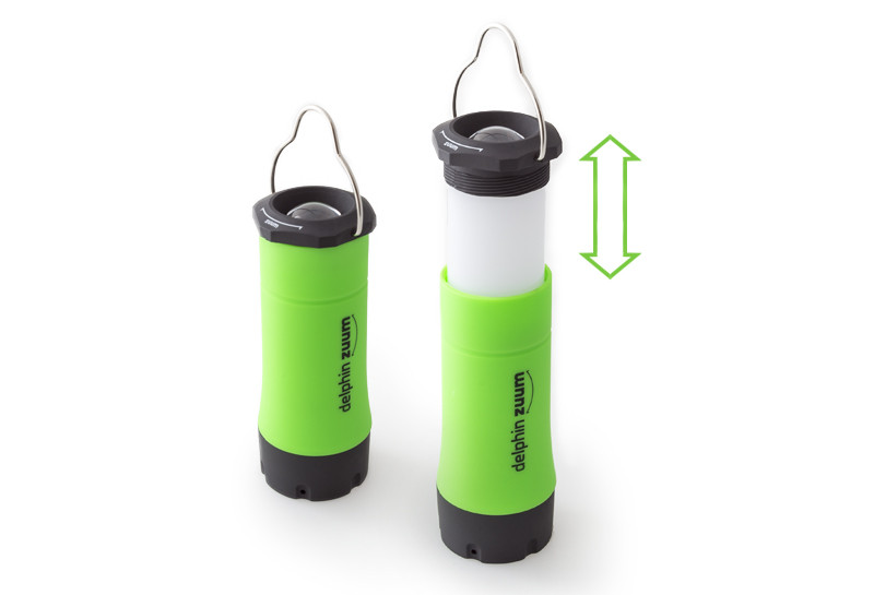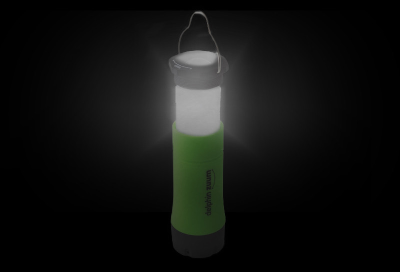 Ez a lámpás önhordó bárhova letehető, vagy a horognak köszönhetően felakasztható. Ennek a lámpának a lehetőségeinek itt nincs vége. A benne lévő LED három módban működik: erős fény, tompított fény és villogó mód. Ahogy lássák a Delphin ZUUM felhasználhatósága végtelen, a klasszikus kézilámpától a sátormegvilágosításig bárhol használható..... A Delphin ZUUM testrésze 3 színben van: zöld, narancs és kék.
