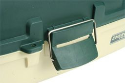 EnergoTeam ET-3 esőálló szerelékes láda Rendkívül praktikus, esztétikus és kis helyigényű szerelékes láda, három tálcával és sok-sok tároló résszel. Esőálló kivitele, valamint twisterálló, minőségi anyaga használati értékét tovább növeli. Kézbe véve egy igazán minőségi dobozt tekinthetünk meg. Törésre és elöregedésre kevésbé hajlamos műanyagból készült, így sokévnyi használat és napon töltött óra után is megőrzi rugalmasságát. Nagyméretű fedél rögzítő csattal rendelkezik, melynek használata pofon egyszerű és biztonságos. Kényelmes füle a szállításban igen előnyös. Esőálló kivitelének köszönhetően megóvja a benne lévő felszerelést. Sokan jártunk már úgy, hogy egy nagyobb eső után a kint hagyott ládánk úgy nézett ki belül, mint amiben versenyt úszik a zacskós gumigyöngy a kapásjelzővel. A sörétólom szett pedig búvár bemutatót tart. Ennek mától vége! Kialakításának köszönhetően víz nem juthat a belső térbe, így a szabadon álló horgok és forgók sem fognak berozsdállni. A nagyobb méretet választva kényelmesen elférünk akár komolyabb aprócikk arzenállal is benne, valamint a hosszabb úszók, előre elkészített szerelékek tárolására is alkalmas.