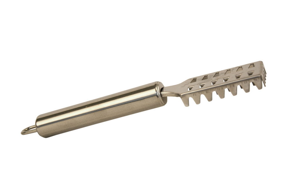 Hatékony segédeszközei a haltisztításnak a különféle pikkelyező kések. Kiváló minőségű rozsdamentes pengével rendelkezik, speciális fogazatának, alakjának köszönhetően gyors és rendkívül alaposan munkát produkál. Vastag, ergonómikus kialakítású nyele kényelmes, stabil fogást biztosít.