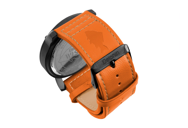 Elegancia, stílus és pontosan kidolgozott részletek. Ez a három fő tényező, amely jellemzi a Delphin WISIA karórát. Első pillantásra a barna műbőr órapántok és a fehér grafikával ellátott fekete számlapból álló kivételes dizájn vonzza fogja Önt. Ezenkívül nem lehet figyelmen kívül hagyni néhány nagyon hatékony részletet, amely örömet szerez a Delphin márka kedvelőinek és minden horgásznak. Talán a legszembetűnőbb a ponty sziluettje az oraszíjon és az óra alsó oldalán is. A Delphin logó kiemeli ennek a terméknek a kivételes stílusát közvetlenül a számlapon vagy a fém kupakon.