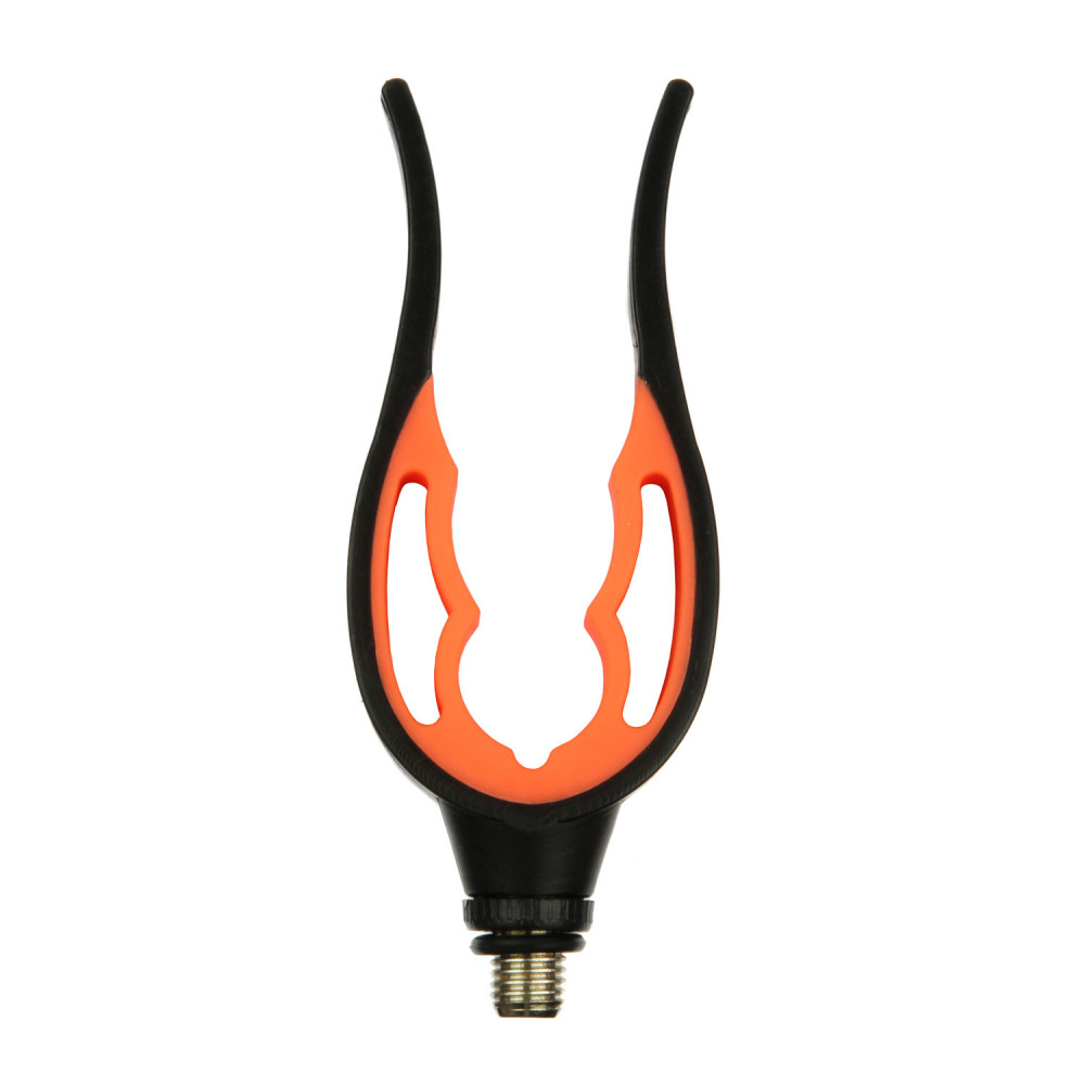 Külső műanyag kerete magasított, meggátolva, hogy kapáskor a hal lerántsa a botot. Belső, fluo narancs gumi pofarésze különböző átmérőjű botrészekhez is alkalmazkodik és stabilan tart. Színének köszönhetően éjszakai horgászat során is hasznos kiegészítő.