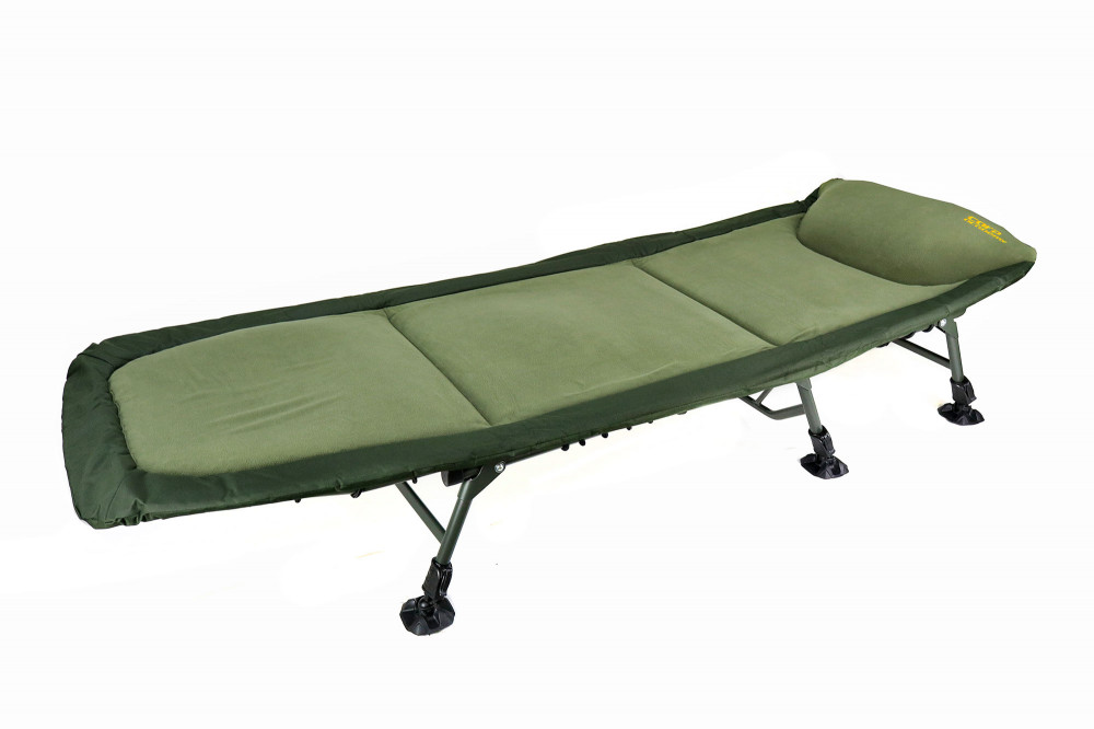 Komfortos horgászágy, 6db teleszkopós lába fokozatmentesen állítható.