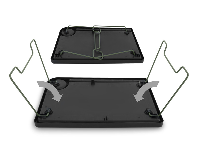 Az asztal lábai összecsukhatók, így szállításhoz rendkívül kompakt méretûre hajtható össze. Az asztallap alján található praktikus rögzítõkapcsok stabilan tartják a lábakat mind nyitott, mind zárt állapotban, így megakadályozzák azok nem kívánt elmozdulását használat vagy szállítás közben.