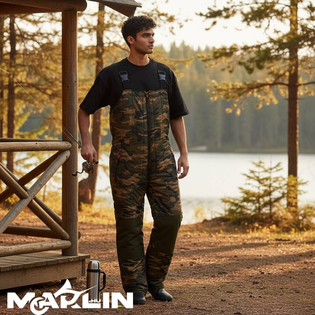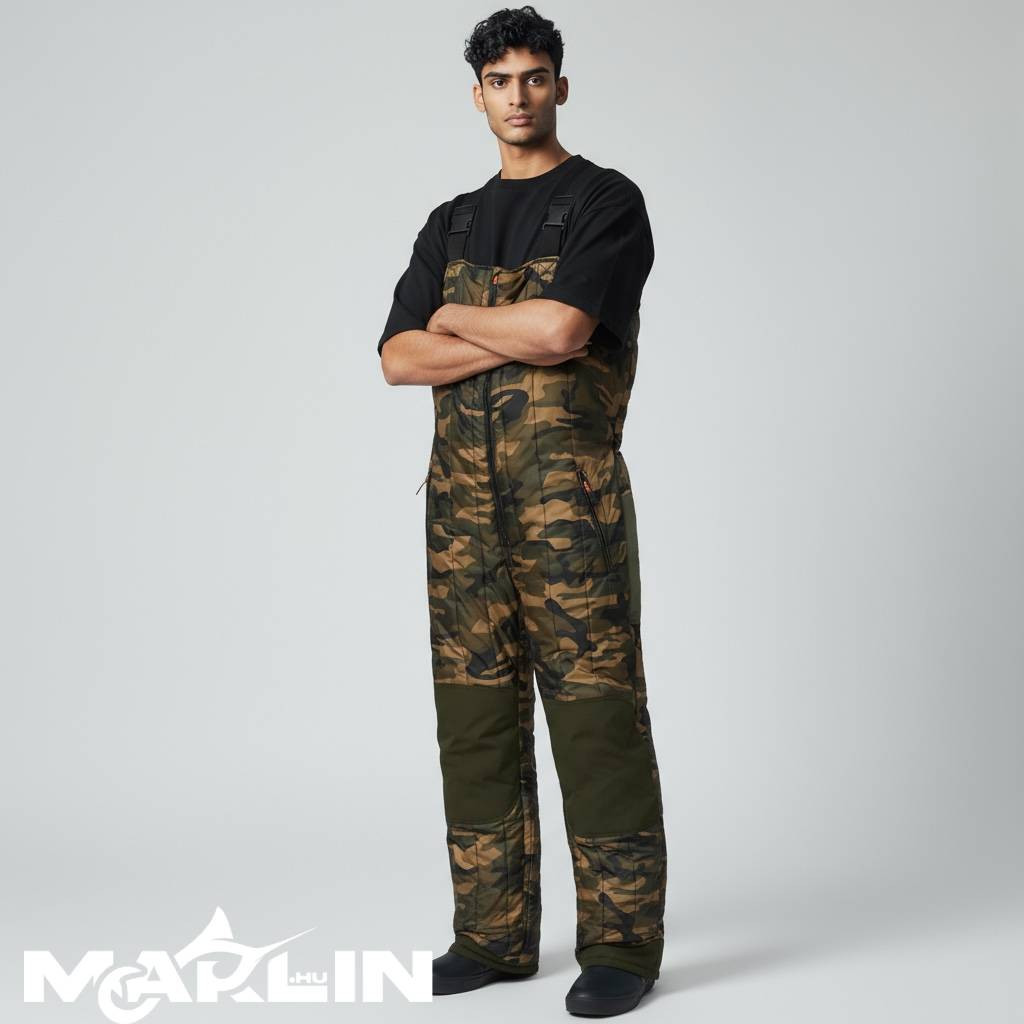 A testhő jelentős része a lábakhoz tartozó nagy izomcsoportokból távozik. Ezért egy rendkívül meleg, steppelt overált készítettünk hideg hónapokra. A vízálló megerősítéseket a térdeken és a háton úgy tervezték, hogy a horgász száraz maradjon, és megakadályozzák a kopást.