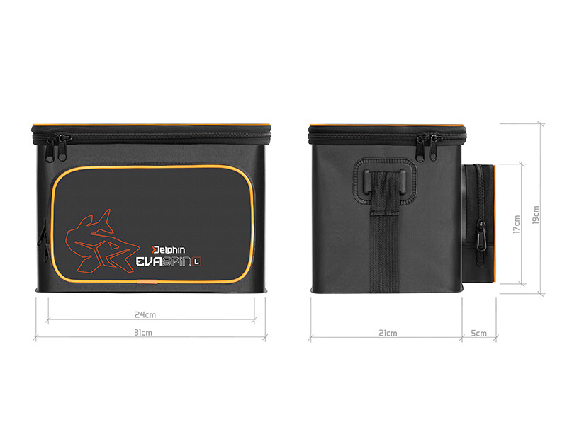 A vízálló EVA anyag és a Delphin EvaSPIN WALK kiváló minõségû varrásai megbízható védelmet nyújtanak még kedvezõtlen idõjárási körülmények között is. Anyaga könnyen tisztítható, és nem szívja magába a szagokat, ami különösen hasznos, ha különféle folyadékokat (pl. aromákat) szállítunk a táskában.