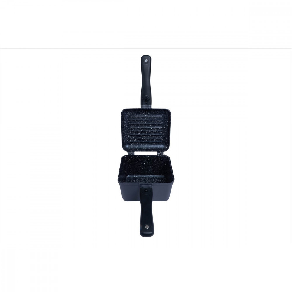 RidgeMonkey Connect Deep Pan & Griddle sütő szett Granite Edition A Connect Deep Pan & Griddle Granite Edition levehető, hideg tapintású fogantyúkkal és egy levehető csuklópántrendszerrel rendelkezik, amely az alap serpenyőt kettővé alakítja – egy mély oldalú serpenyővé és egy külön kisebb serpenyővé. A serpenyő fedőként működik a mélyebb serpenyőn, és leválasztható, hogy külön serpenyővé váljon, így egyszerre két adag ételt főzhet. Vadonatúj gránit-stílusú bevonatunk keményebbé, tartósabbá teszi serpenyőinket, és jobb tapadásgátló tulajdonságokkal rendelkezik, a kompakt edényeket teljesen új szintre emeli. Standard és XL méretben kapható. Specifikációk: - Gránit stílusú bevonat javított tapadásgátló tulajdonságokkal - 1x serpenyő 1x mély oldalú serpenyő 1x kivehető mágneses, hőre keményedő műanyag hidegérintéses fogantyú védőtasakkal - Levehető zsanérrendszer - Könnyű alumínium konstrukció - Elegáns Gunmetal szürke kivitel - Bordázott külső az egyenletes hőátadásért - Védett, bejegyzett formatervezési minta - Minden hagyományos tűzhelyen és közvetlen hőforráson használható (indukciós főzőlapon nem használható)