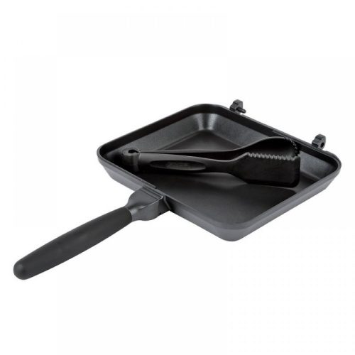 Végül, de nem utolsósorban, a SONIK SIZZLA rendkívül hasznos, többcélú fogókészlettel érkezik, amelyek könnyen tárolhatók a fogantyún főzés közben, és szükség esetén két független lapátra oszthatók.