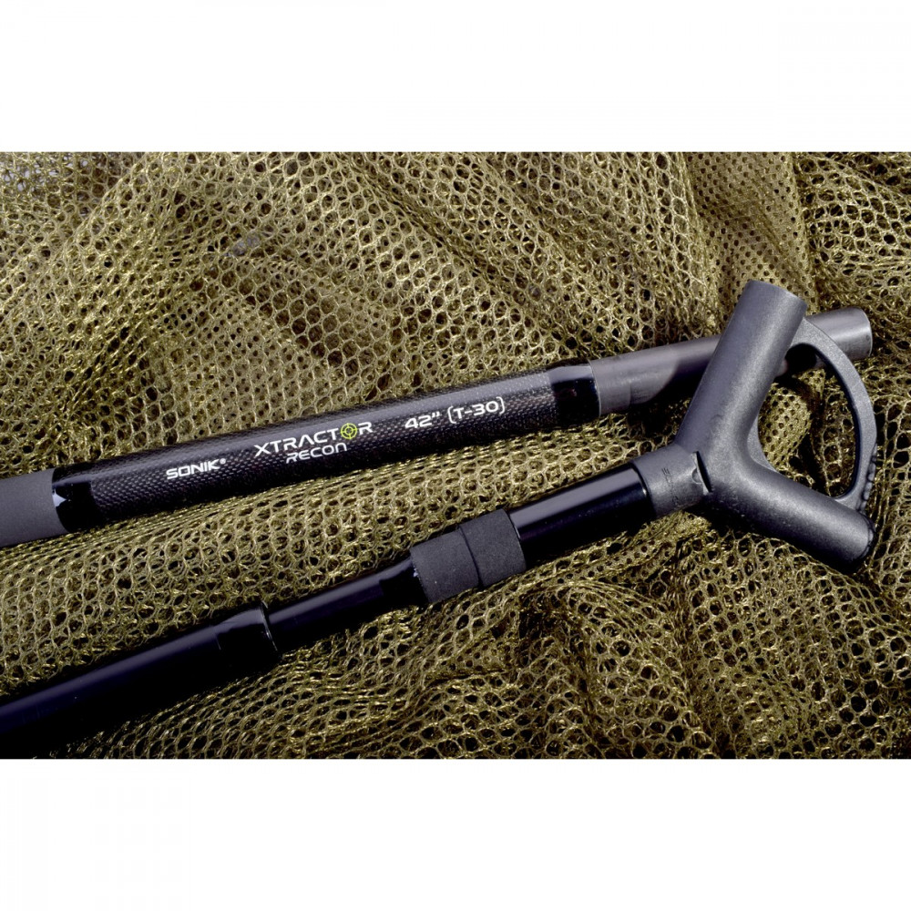 Sonik XTractor Recon bojlis merítőháló 42 A Sonik egyik legnépszerűbb botsorozatához, a közkedvelt fél-teleszkópos kialakítású XTractor Recon botokhoz is elérhetővé váltak a prémium minőségű merítőhálók, amelyek az XTractor széria kedvező funkcionalitását garantálják, a maximális szállítási komfort mellett. Specifikációk: - T30-as modell: 30 inch, 76 cm szállítási hossz - 3 részes, 1,8 méteres nyél - Merev karbon-kompozit nyél és háló keret - Kemény üvegszálas tartóelemek - Szabadon futó oldalsó hálórészek - 95 cm mélységű szuperlágy hálószövet - Megerősített varrások - Eloxált és lézerrel maratott vég