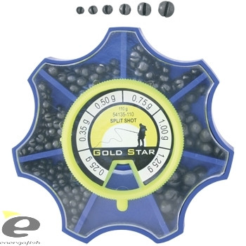 Az 110 grammos ólomkészlet különböző méretű (0,25; 0,35; 0,50; 0,75; 1,00; 1,25g) sörétólmokat tartalmaz, amikből a megfelelő méreteket kiválasztva a nagyon érzékeny osztott súlyú szerelékek besúlyozását végezhetjük el. Az optimális keménységű ólmok felrögzítés után a zsinórt nem károsítják és nem mozdulnak el rajta.