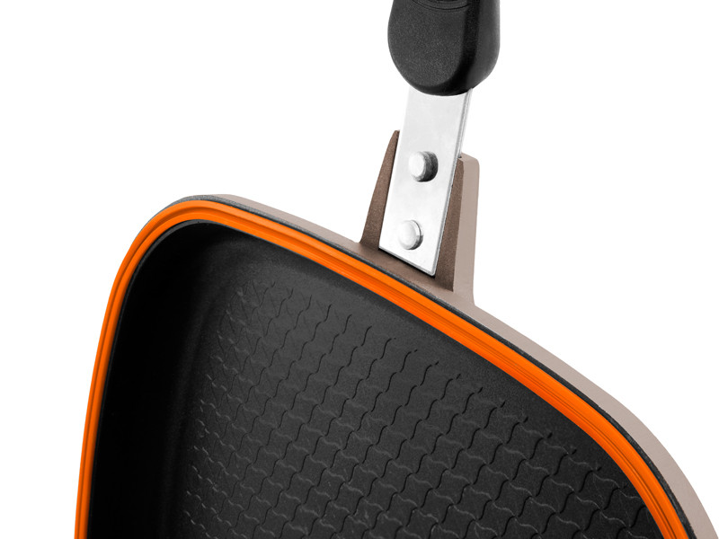 Az edény alapja alumíniumból készült, tapadásmentes kivitelben, ami maximálisan csökkenti a leégést főzés, grillezés vagy sütés közben. Ezenkívül egy ilyen felület nagyon könnyen mosható és ellenáll a mechanikai sérüléseknek.