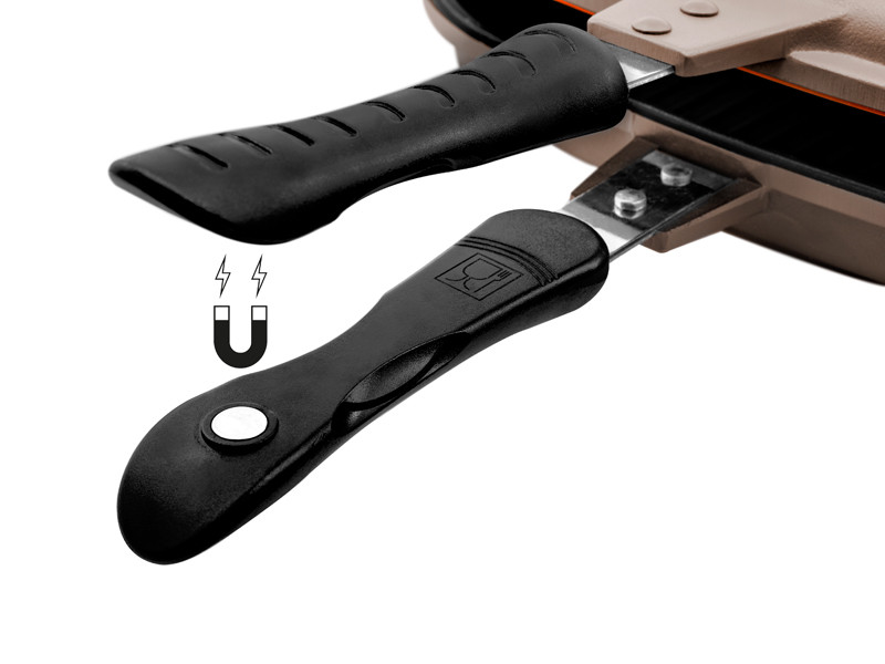 A fogantyún található mágnesnek köszönhetően az egyes felek tökéletesen összetartanak zárás után, így főzés közben tetszés szerint elforgathatja a serpenyőt. A magas hőmérsékletnek ellenálló kerületi tömítés tökéletes tömítést biztosít. A zárt edény messze legnagyobb előnye, hogy a hő sokkal gyorsabban felhalmozódik a belsejében, és nem távozik a serpenyőből főzés közben. Ez sokkal gyorsabbá és egyszerűbbé teszi az ételek elkészítését a természetben.