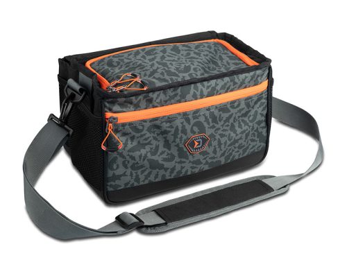 Ezt a crossbody táskát a mellkasára helyezheti, hogy könnyen hozzáférjen a csalikhoz és a tartozékokhoz anélkül, hogy folyamatosan le kellene vennie a válláról. Így több időt és energiát takaríthat meg a horgászathoz. Egy tépőzárral gyorsan elérhető a táska fő rekesze, amiben egy műanyag tárolódoboz található kivehető elválasztókkal a csalik számára. Egy kisebb cipzáras zsebben egy EVA hab tároló is található, ami bevágásokkal rendelkezik a használatra kész csalik tárolására. Tépőzárral van rögzítve, ami azt jelenti, hogy levehető vagy kicserélhető. A zseb elég szélesre nyitható a kényelmes használathoz, és annak mindkét oldalán a varrott anyag megakadályozza, hogy a csalik kiessenek, ha esetleg nincsenek megfelelően rögzítve. Belül két kisebb hálós zseb és egy kis cipzáras zseb található az apró kiegészítők számára. A táska alsó részén egy mágnes található, amely minden tárgyat a helyén tart. A táska tetején található legkisebb cipzáras zsebben elfér a fogó és a csipesz.