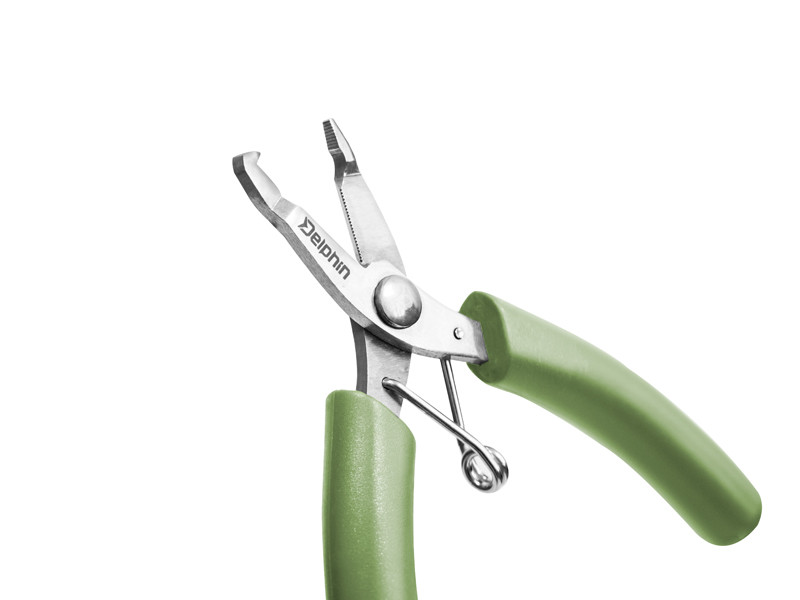 Praktikus, multifunkciós fogó, rozsdamentes acélból, melynek karjai gumírozottak a jobb fogás érdekében. A Delphin MINI könnyedén nyírja a fonott zsinórokat, damilokat, de az aramid (kevlár) huzalt is. A mikrofogak a pofák belső oldalán a megakadályozzák a csúszást, így szép sima a vágás. A fogót tudja használni SPLIT RINGS gyűrű szétnyitására és sörétólom felfogatására. Az univerzális kihasználtságának köszönhetően minden horgász technikánál tudja használni.