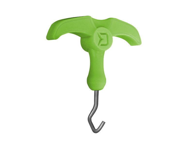 A fogó rész részletgazdag és ergonomikus kialakítású, így mindig tökéletesen illeszkedik az ujjak közé. Ez a forma nemcsak a fogást, hanem magát a csomó meghúzását is megkönnyíti. Emellett erős zöld színű, aminek köszönhetően a KNOTER nem vész el a felszerelése egyéb darabjai között.