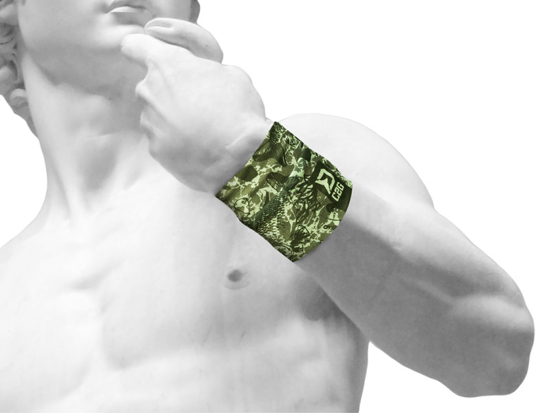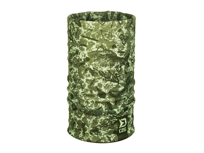 Multifunkcionális kendő egyedi terepszínű dizájnnal, mely a pontyozóapócikk elemeit a ponty sziluettjével ötvözi.