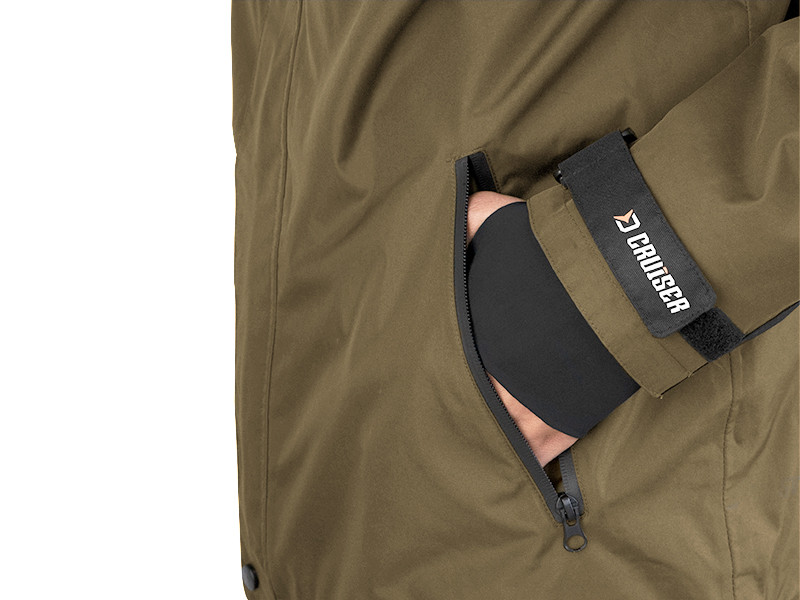 A CruiserCROS szett egy külön megvásárolható kabátból és nadrágból áll, így minden darabhoz a megfelelő méretet kombinálhatod. Mind a kabát és a nadrág külső rétegéhez használt anyag 5000 mm-ig vízálló, teljesen ragasztott varratokkal rendelkezik és szélálló is. Ezek a paraméterek kényelmet és védelmet biztosítanak horgászathoz, mindennapi viselet esetén vagy egyéb szabadtéri tevékenységek során.