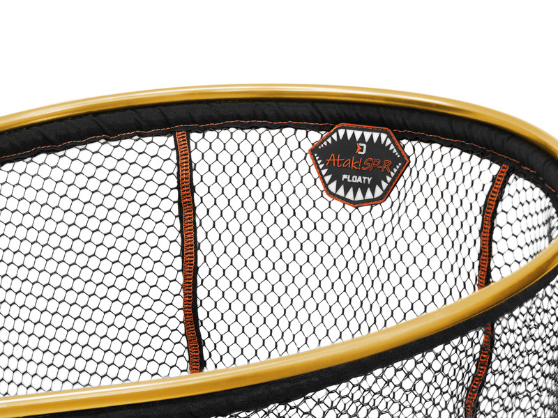 Delfin ATAK! SP-R FLOATY egy gumírozott úszó merítőfej. Precíz kialakításának köszönhetően maximális kényelmet nyújt a használat során. A gumírozott fekete háló narancssárga varrással egy könnyű, de nagyon erős narancssárga alumínium keretbe van szerelve. A perem alatt lévő úszó rész megkönnyíti a halak merítését. Hasznos lesz fényképezésnél és vízben a hallal való manipuláció, amikor a horgász nem kénytelen a partra kimenni, hanem az úszó merítőfej a vízfelszínen lebeg. A gumírozásnak köszönhetően a háló nem szívja magába a nem kívánt szagokat és gyorsabban szárad. A fej ideális az Atak! nyelek speciális sorozatához. Az univerzális menetnek köszönhetően azonban a legtöbb eladott nyélhez alkalmas. Ez a kifogástalanul kidolgozott pergető merítőfej első látásra megnyeri a tetszését.