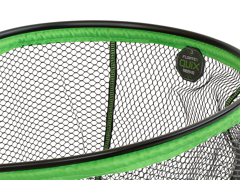 Lebegő kialakítású, négyzet alakú merítőhálófej a REAXE sorozatból, könnyű, de masszív fekete alumínium kerettel. A FloateR QUIX hálója gumival borított, ezért nem szívja magába a vizet és gyorsan szárad. Ráadásul a keret alsó része teljes egészben zöld szövettel borított, a tartósság növelése érdekében.