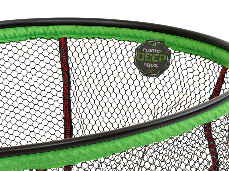 A FloateR DEEP hálója gumival borított, ezért nem szívja magába a vizet és gyorsan szárad. Sokkal mélyebb, mint a hagyományos hálók, így több helyet biztosít a nagyobb fogások számára, és nem áll fenn annak a veszélye, hogy a halak kiugranak belőle. Ráadásul a keret alsó része teljes egészben zöld szövettel borított, a tartósság növelése érdekében.