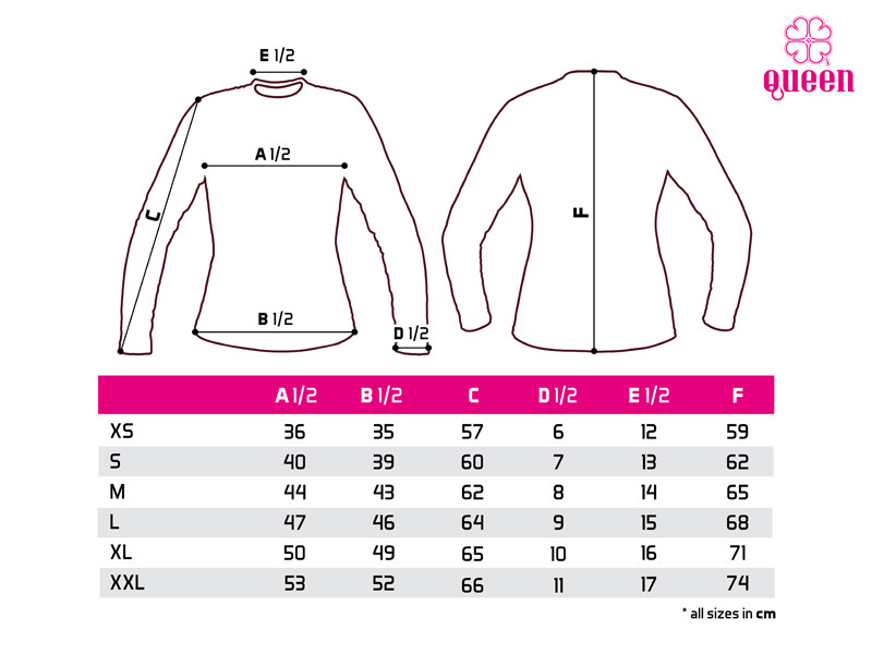 A QUEEN 4LOVE thermo aláöltözet erősan összenyomódó ruházat, amely a szokásosnál lényegesen nehezebb anyagból készül. Ha a kényelem érdekében lazább szabást szeretne, javasoljuk, hogy a szokásosnál egy mérettel nagyobbat válasszon.