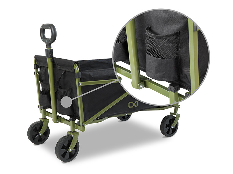A nagyobb kényelem érdekében a kocsi elülső oldalán két tartó található palackok vagy egyéb tartozékok számára. Egy másik hasznos funkció a tárolórész alján található hurok, amely leegyszerűsíti a hajtogatási folyamatot. A kényelmes szállítás érdekében összecsukott állapotban fogantyúk találhatók rajta mindkét oldalon.