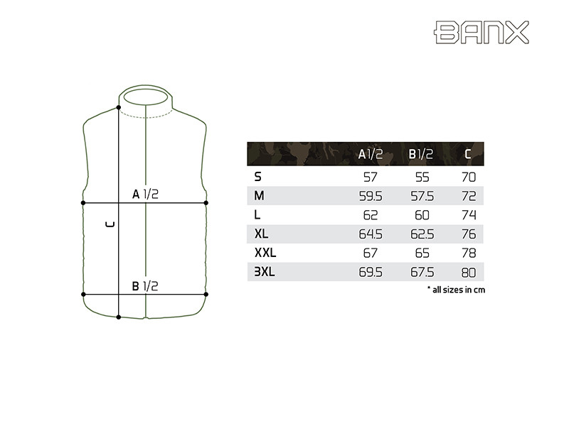 A záródást minőségi cipzár biztosítja, amelyet kívülről anyag takar, így jobban ellenáll a külső hatásoknak. Mindkét oldalon elég tágas zsebek találhatók a kéz melegen tartásához vagy különféle kiegészítők tárolásához. A BANX mellény magasított gallérral is rendelkezik, amely jobb védelmet nyújt a nyak és a tarkó számára alacsony hőmérséklet esetén.