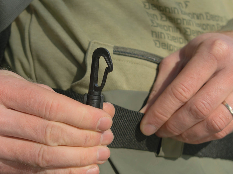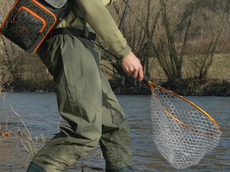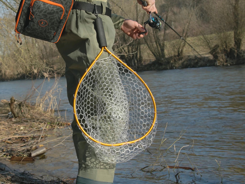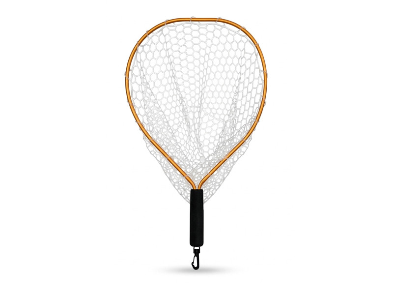 Az EVA habból készült nyél biztos és kényelmes fogást nyújt még nedves kézzel is. Ez az anyag minimális karbantartást igényel, gyorsan szárad és könnyen tisztítható. Praktikus kiegészítő az integrált, visszahúzható zsinór karabinerrel, amely lehetővé teszi a merítőháló egyszerű rögzítését övhöz, hátizsákhoz vagy pergető mellényhez, így horgászat közben mindig kéznél van.