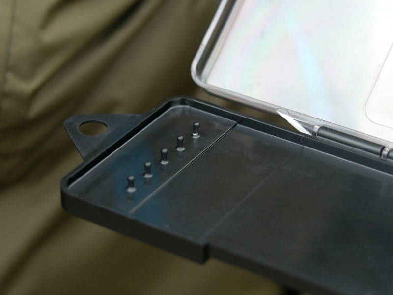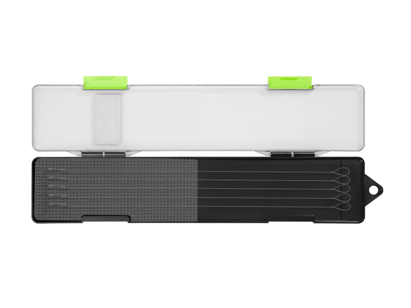 A doboz teste strapabíró fekete műanyagból készült, amely megvédi annak tartalmát a mechanikai sérülésektől. A belső rész műanyag tüskékkel van ellátva a hurkok pontos rögzítéséhez, valamint puha EVA habbal, amelybe a horgok biztonságosan beszúrhatók anélkül, hogy a hegyük tompulna. A 303 mm-es hossz ideálissá teszi különféle klasszikus feeder vagy method feeder horgászatnál használt előkék tárolására.