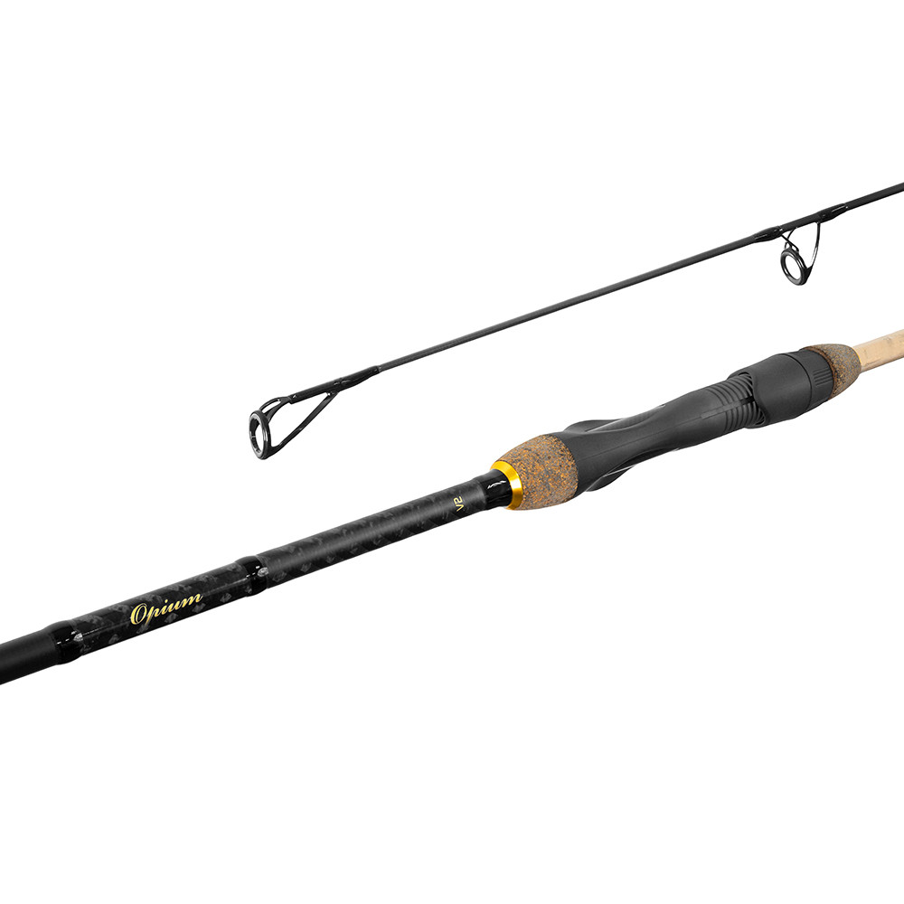 Az OPIUM botok első sorozatának sikere után megérkezett a szebb még jobb minőségű sorozat, az OPIUM V2. Újra a megbízható 30T karbon blankra alapoztuk a bottestet, melynek parabolikus akciója segít a kapitális halak fárasztásakor, de az erő tartalékok ellenére élvezni fogja a kisebb halak fárasztását is. A 3lbs dobó terhelés univerzális és a 30T karbon kombinációjával kivételes dobó és fárasztó akciójú botot hoztunk létre. Az OPIUM V2 botteste valamivel merevebb mint az elődje.A nyélnél egy ergonóm FUJI orsótartót használtunk RUBBER CORK részekkel kiegészítve, felette kézzel font mintázat van a karbon szalagon. A minőségi SEAGUIDE gyűrűsort használtunk SiC betéttel a 360cm és 390cm modelleknél a keverőgyűrű 50mm átmérőjű. Az összetételt fém gyűrűvel erősítettük meg, mely az összetételnek plusz szilárdságot add. A második bojlis OPIUM verziónál újra használtuk a kedvelt vékony ThinCORK-ot a hagyományos stílus kedvelőinek. Ez az anyag duplázott így nem kell félnie az ellenálló képességétől. A nyél még bronz kiegészítőkkel van ellátva és RUBBER CORK-ban végződik.