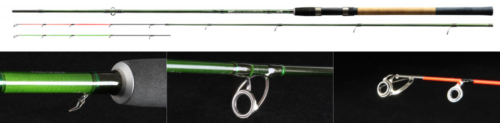 A maximális dobástávolság elérése érdekében még a rezgőspiccek is extra nagy méretű gyűrűkkel lettek szerelve. Hihetetlen, hogy ilyen könnyű botok mekkora erőtartalékokkal rendelkeznek!