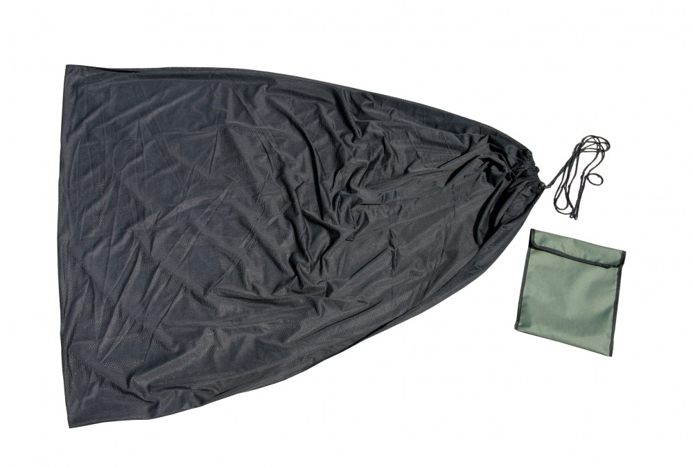 Nagyméretű, professzionális pontyzsák, lágy halbarát anyagból, tartótáskával.